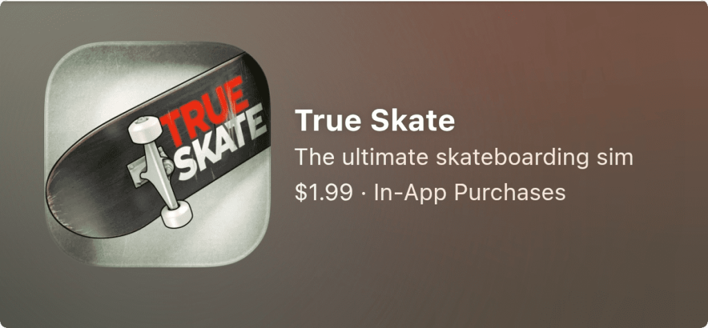 Touch Arcade 点评 - 4.5/5 - 'True skate 絶对是个非常特别的游戏'