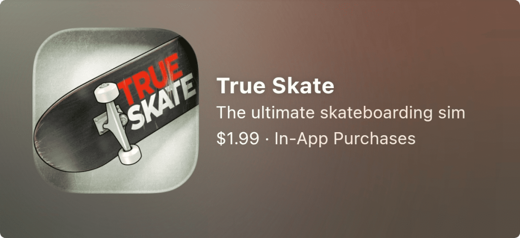 Touch Arcade 点评 - 4.5/5 - 'True skate 絶对是个非常特别的游戏'