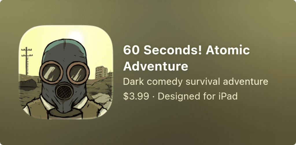 《60秒!》是一款以核爆为背景的黑色幽默生存冒险游戏。在核弹来袭前,抓紧时间搜集物资并救出家人。在避难所中努力求生,做出艰难抉择,合理分配食物,甚至还得猎杀变异蟑螂。或许你能活下来,或许不能。