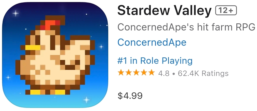 《星露谷物语》——获奖开放式农场RPG,邀您移居乡间开启新生活!超过50小时游戏内容,新增移动版专属功能:自动存档与多操控方案。